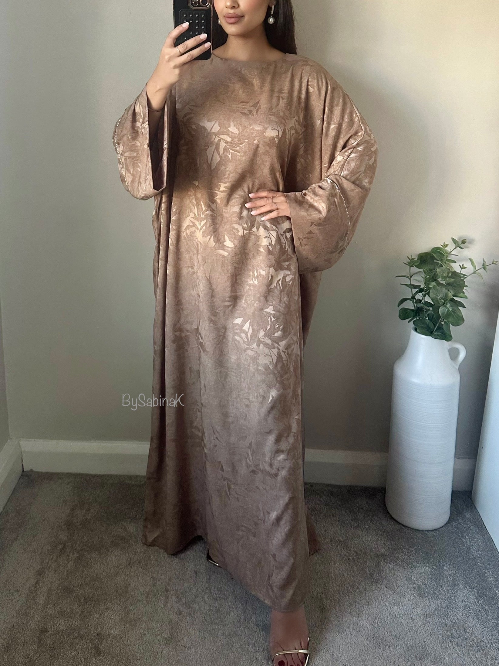 Beautiful jacquard shimmering floral print kaftan with rhinestone sleeves detail