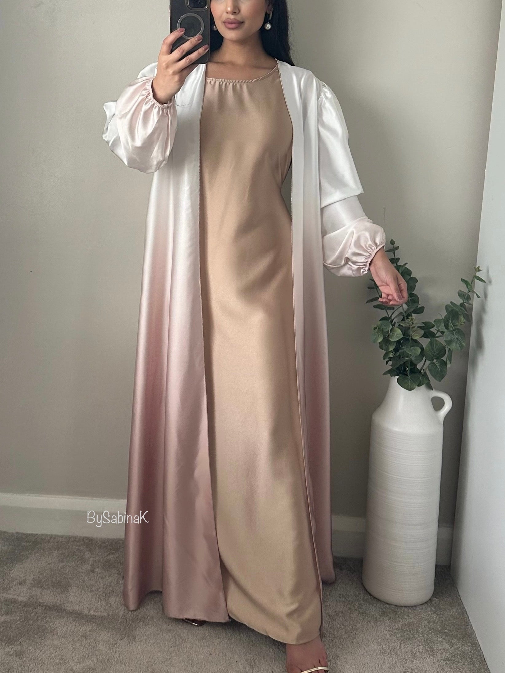Beige Nude Satin Ombré Abaya Set